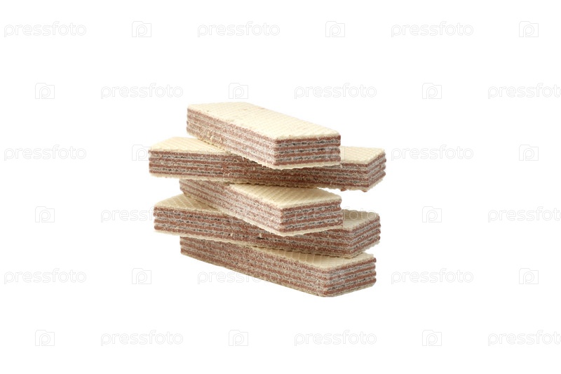 Пять вафель с шоколадной начинкой на белом фоне