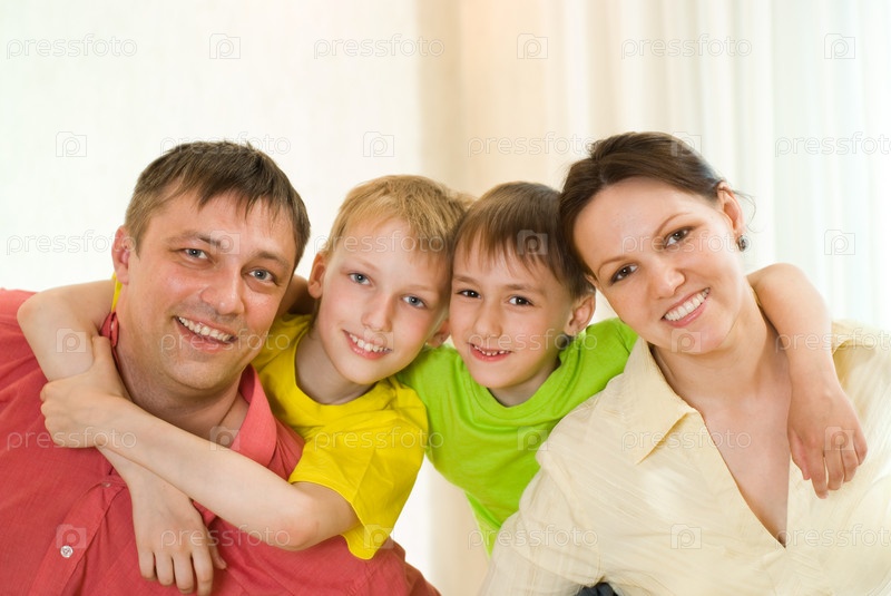 Портрет счастливой семьи с двумя детьми