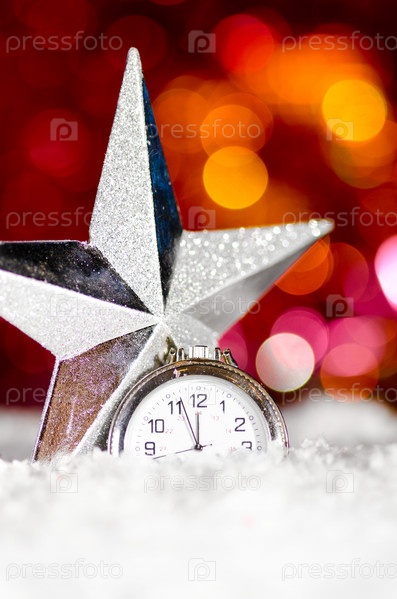 Звезда и часы в снегу