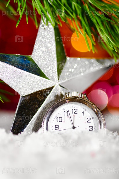 Звезда и часы в снегу
