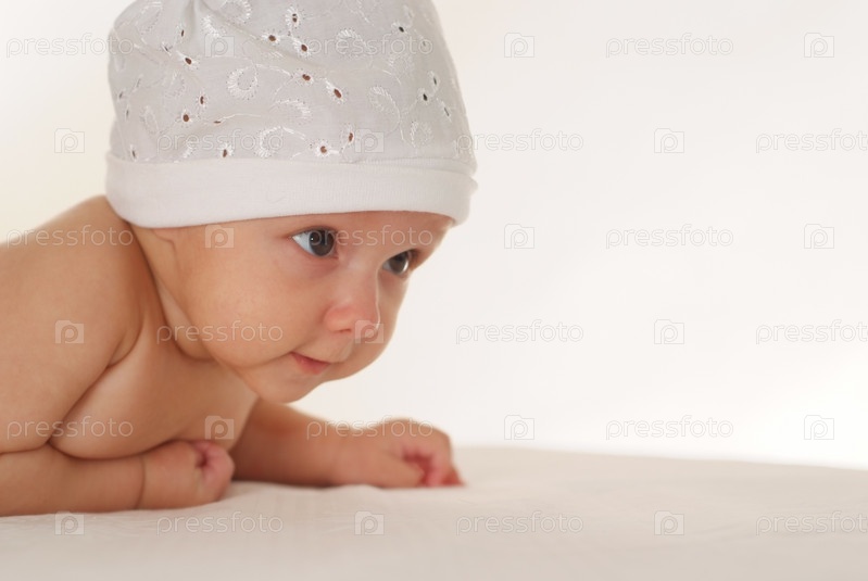 Малышка в белой шапочке, портрет