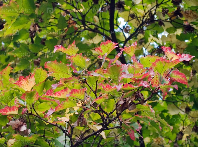 Ветка красно-зеленых листьев на дереве