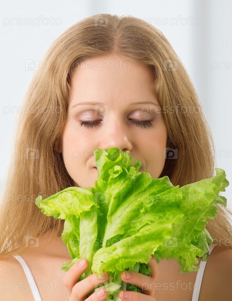 Портрет красивой молодой женщины с салатом