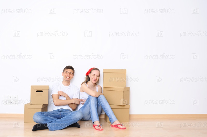 Молодая пара, отдыха от переезда в новый дом