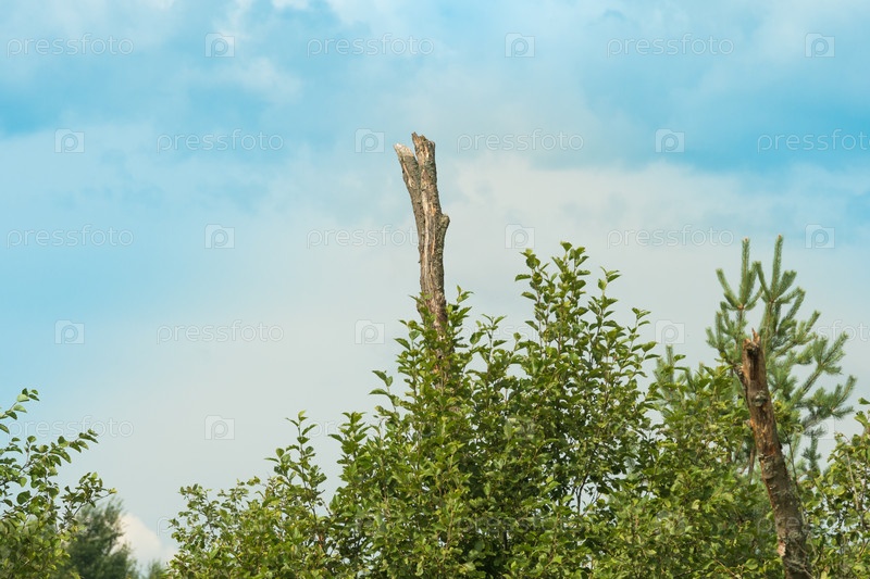 Высохший ствол дерева на фоне голубого неба