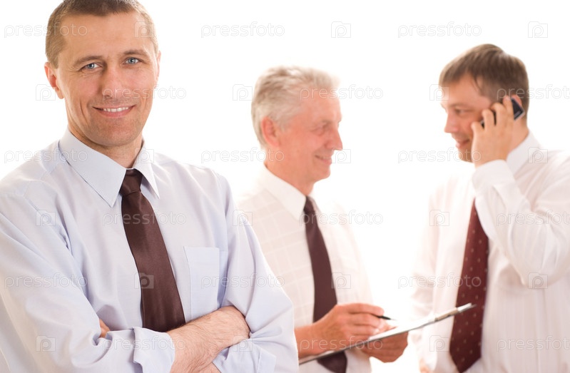 Три бизнесмена на белом фоне
