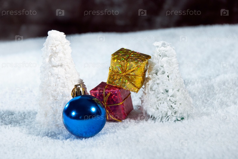 Рождественские украшения в снегу