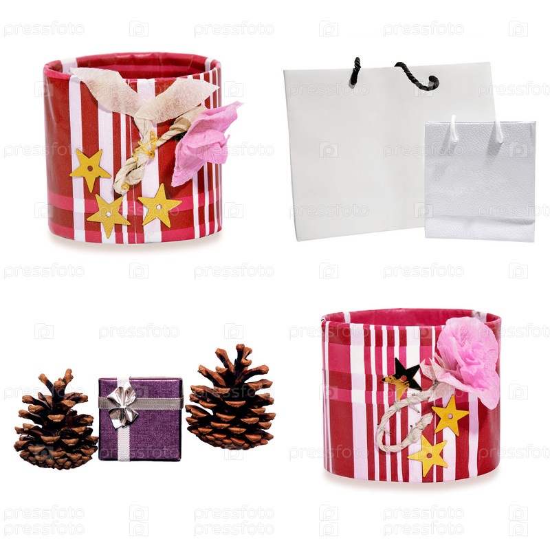 Рождественские подарочные упаковки на белом фоне