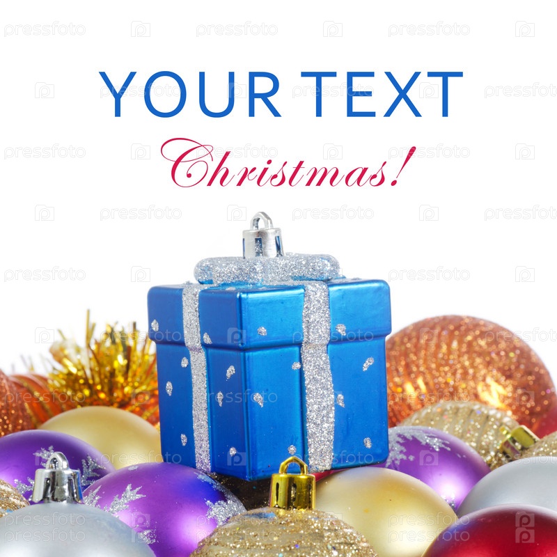 Рождественские украшения и место для текста на белом фоне