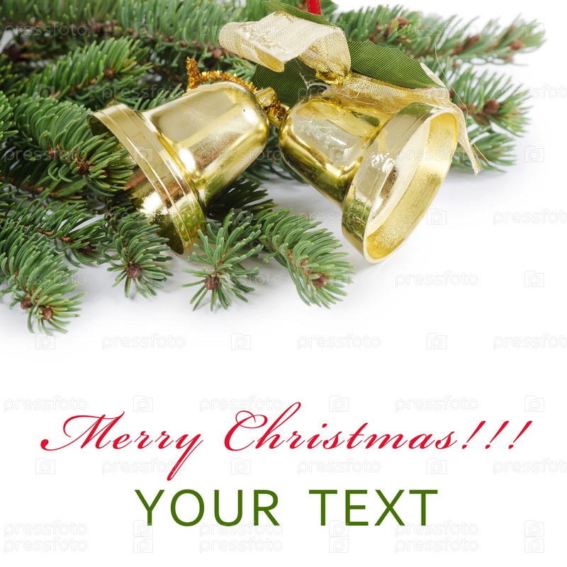 Рождественские украшения и еловые ветки на белом фоне