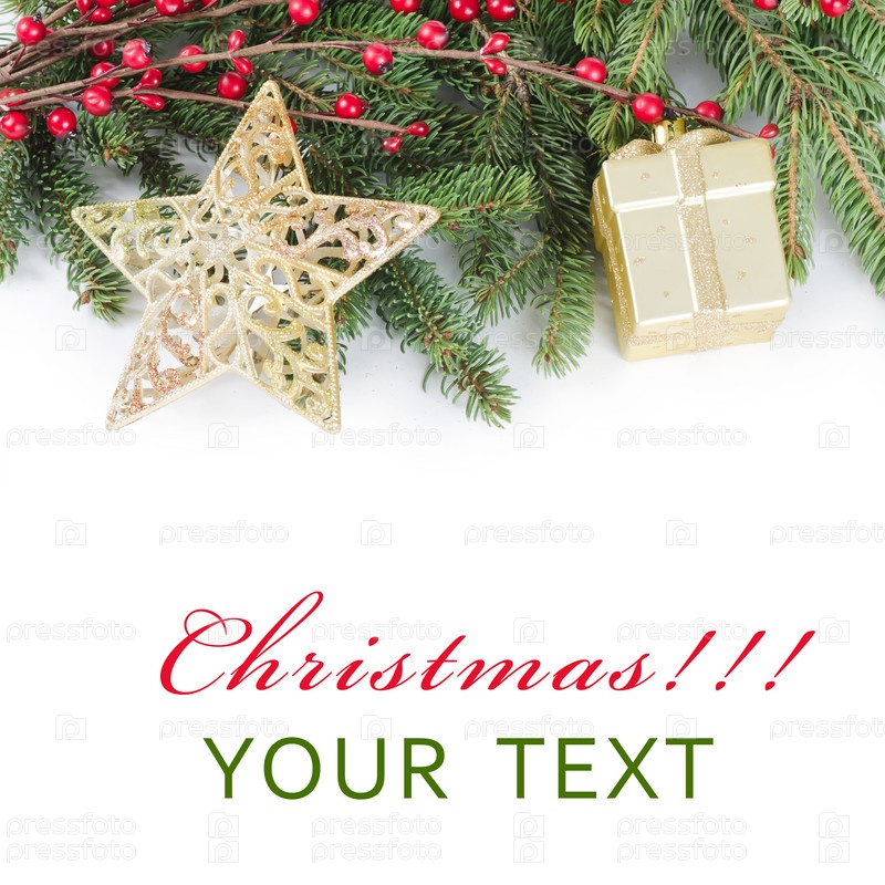 Рождественские украшения и место для текста на белом фоне