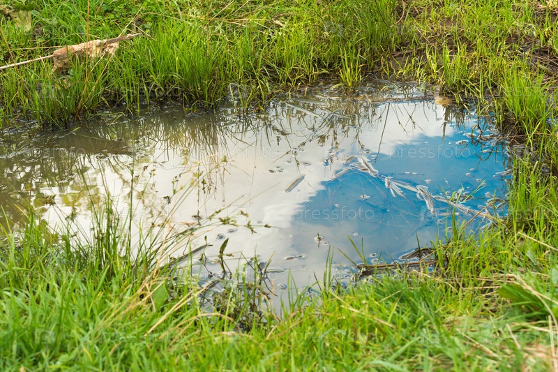 Лужа после дождя в которой отражается небо