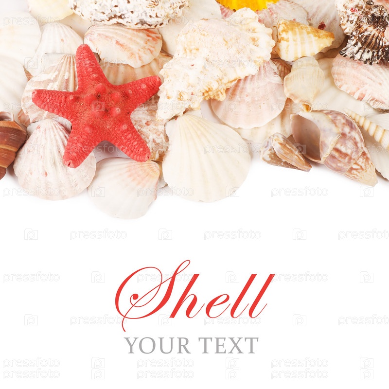 Ракушки и морская звезда на белом фоне