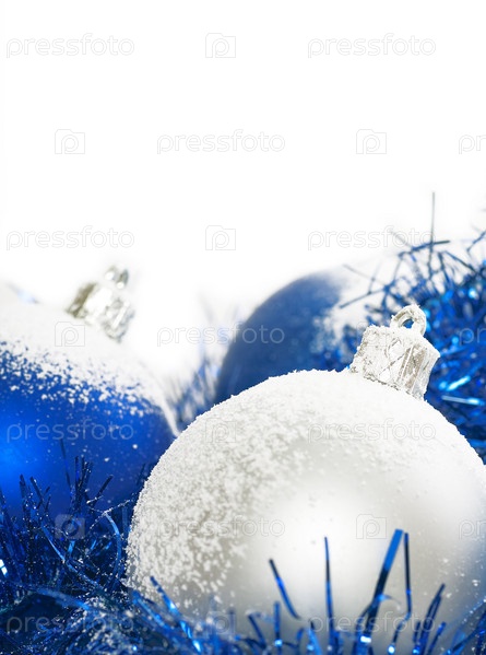 Синие и серебряные рождественские шары изолированы на белом фоне