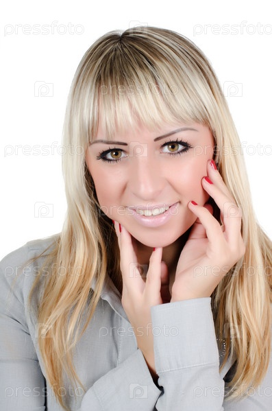 Красивая молодая блондинка на белом фоне
