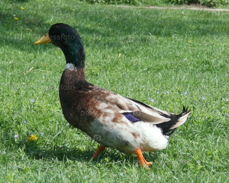 Утка идет по траве