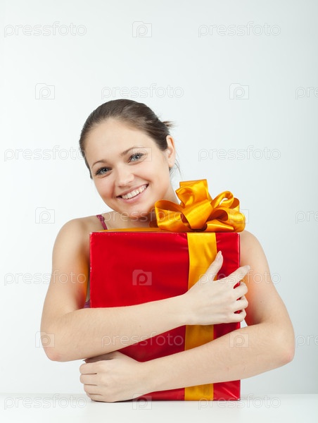 Счастливая девушка с подарком