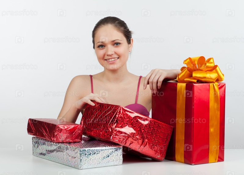 Счастливая девушка с подарками