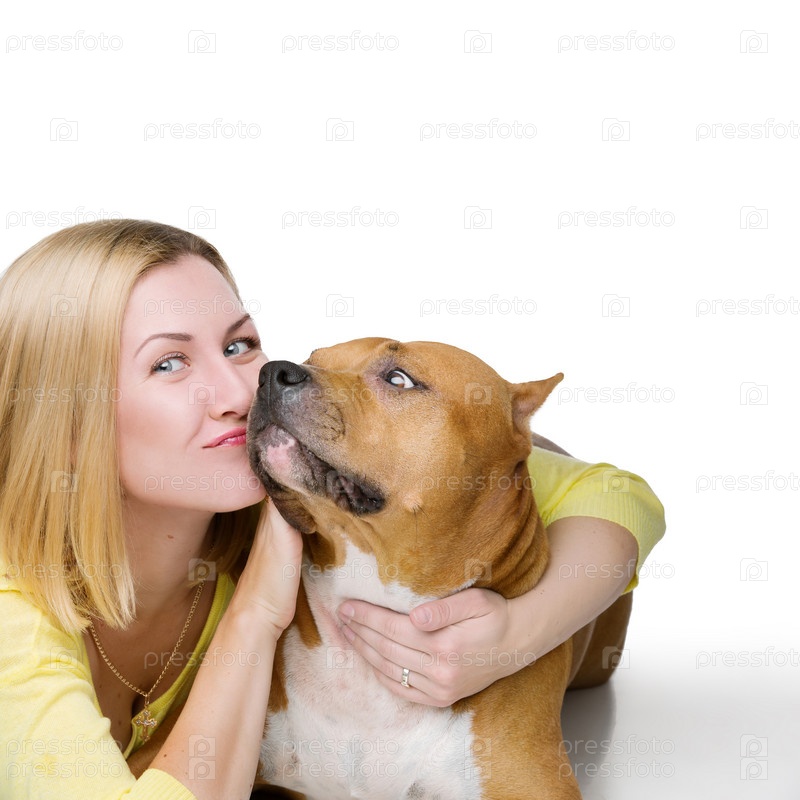 Девушка ласкает собаку