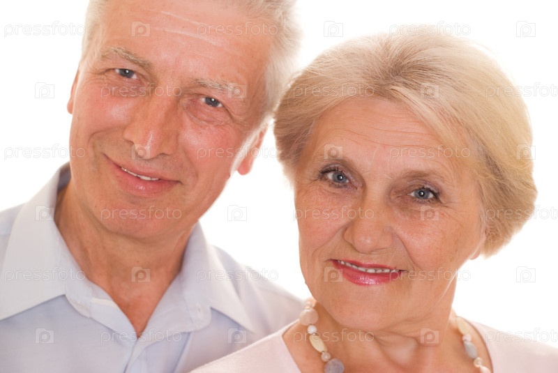 Счастливая пожилая пара на белом фоне