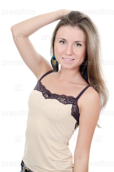 Портрет красивой молодой девушки на белом фоне