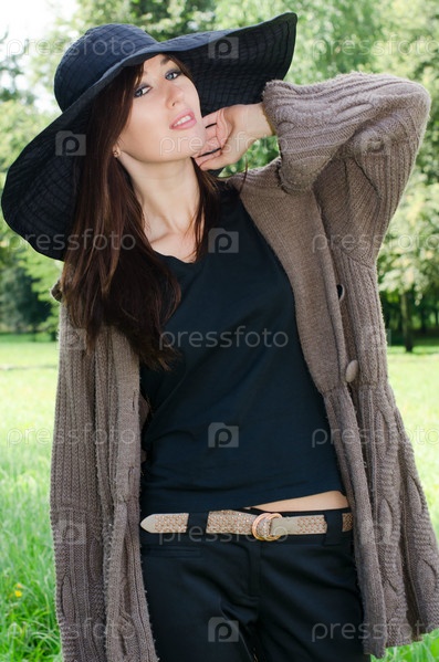 Портрет девушки в шляпе на фоне природы