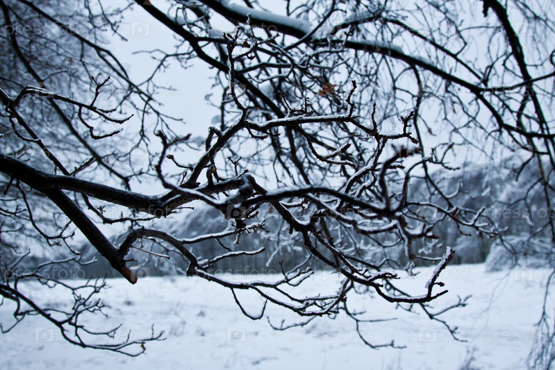 Ветки покрытые льдом и снегом