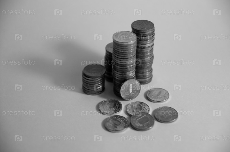 Стопка монет на сером фоне