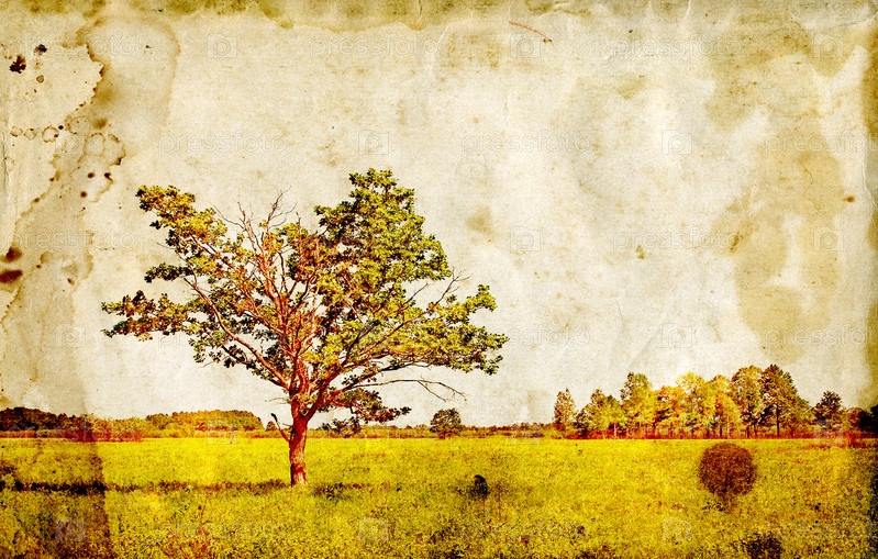 Осенний пейзаж на старой бумаге