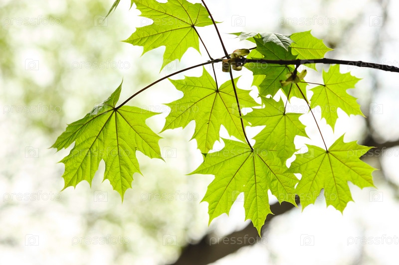 Ветка клена крупным планом на размытом фоне