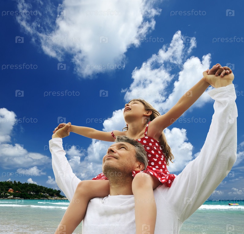 Отец с дочерью смотрят на небо