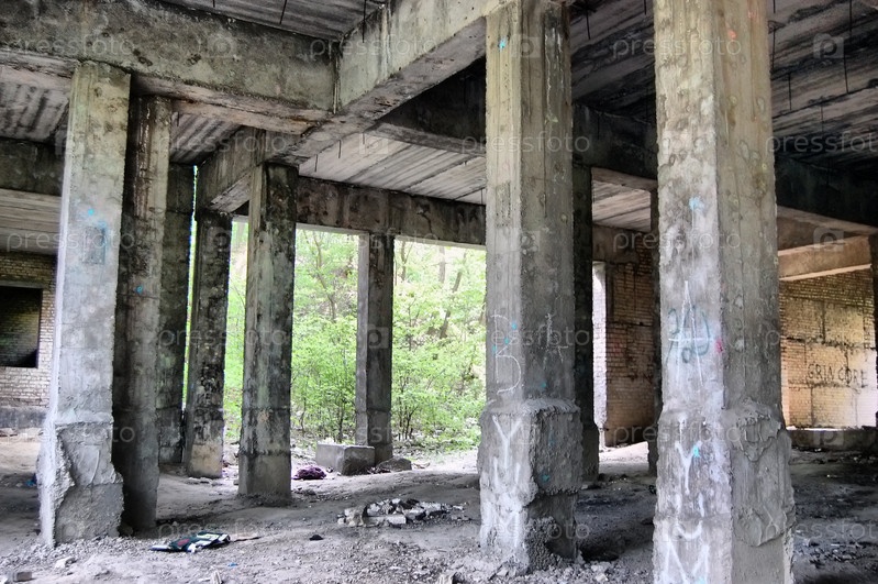 Чернобыльская зона, покинутое полуразрушенное здание