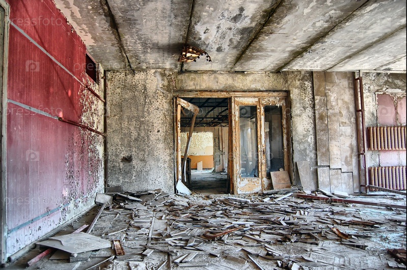 Чернобыльская зона, покинутое полуразрушенное здание гостинницы "Полесье"