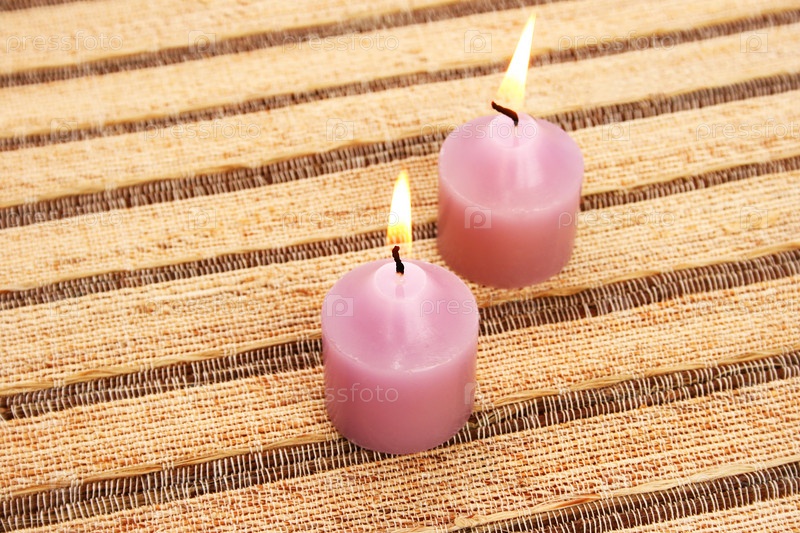 Две розовые свечи на бежевом фоне