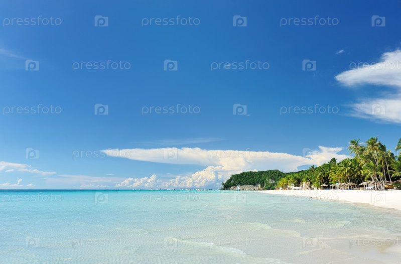 Красивый пляж с шезлонгами, Филиппины