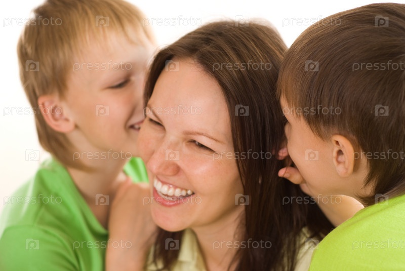 Радостные улыбки счастливой матери и сыновей