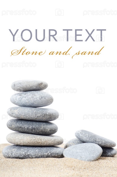 Куча камней на песке на белом фоне