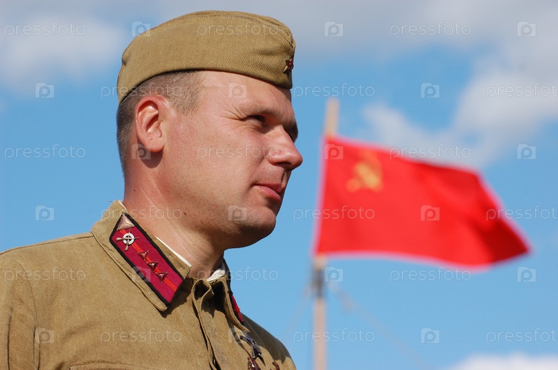 Военно-историческая реконструкция сражения, солдат в форме Красной армии 1941 года