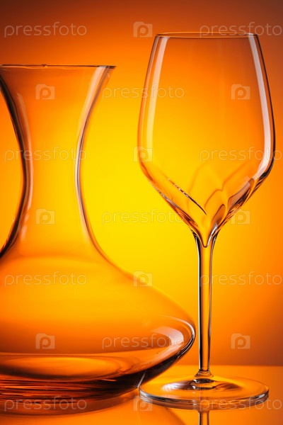 Графин и бокал на оранжевом фоне