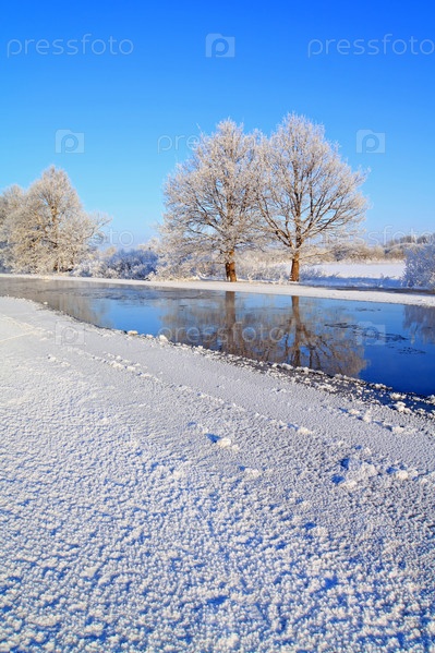 Замерзающая река, зимний пейзаж