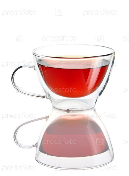 Чашка чая с отражением на белом фоне