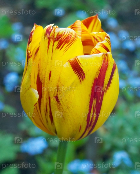 Желто-красный тюльпан крупным планом