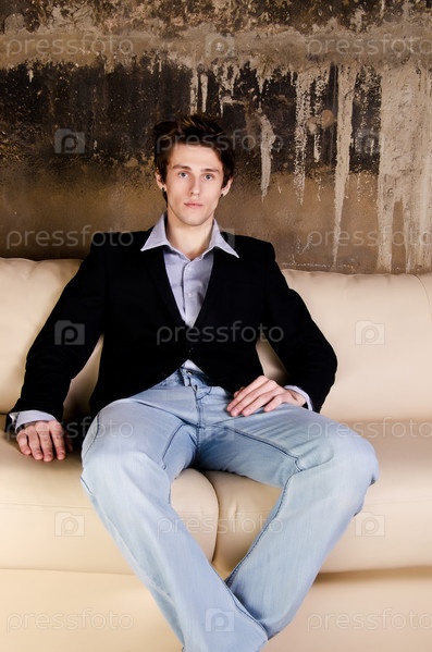 Стильный парень на белом диване