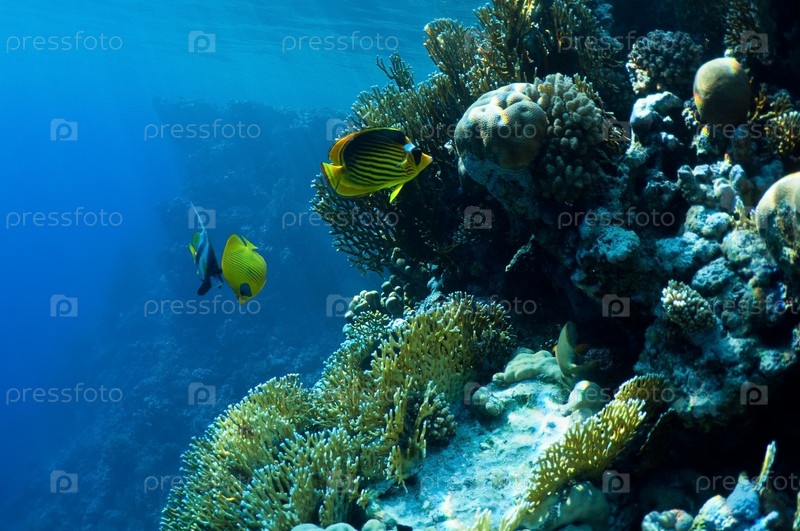 Подводный ландшафт. коралловый риф и тропические рыбы