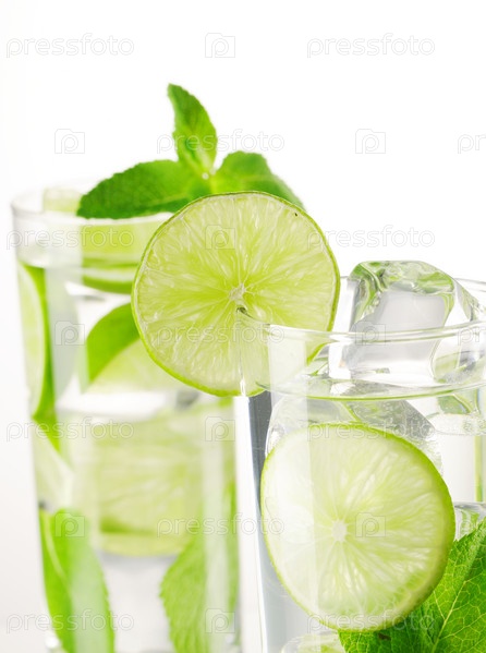 Коктейли "Мохито" на белом фоне