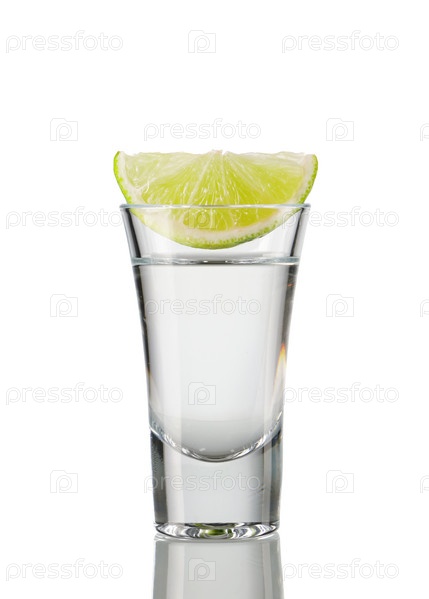 Текила с лимоном на белом фоне