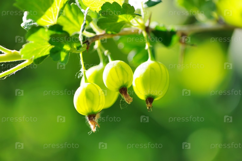 Зеленый крыжовник на ветке