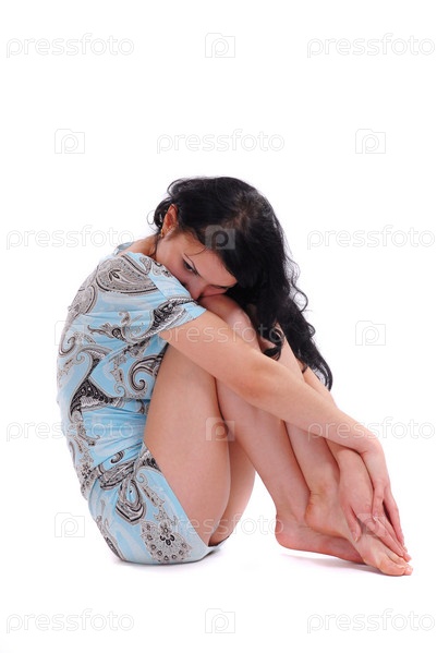Грустная девушка на белом фоне