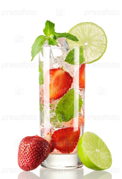 Клубничный коктейль Мохито на белом