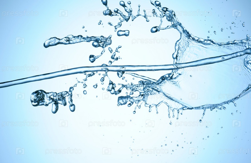 Поток воды на голубом фоне